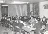 Photographs depicts a group of men (including clergy and lay people) gathered around a large board table at what appears to be a meeting.