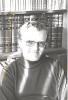This is a photograph of Michael O'Callaghan sitting in front of a bookshelf as Professor of Systematic Theology at Newman Theological College.
